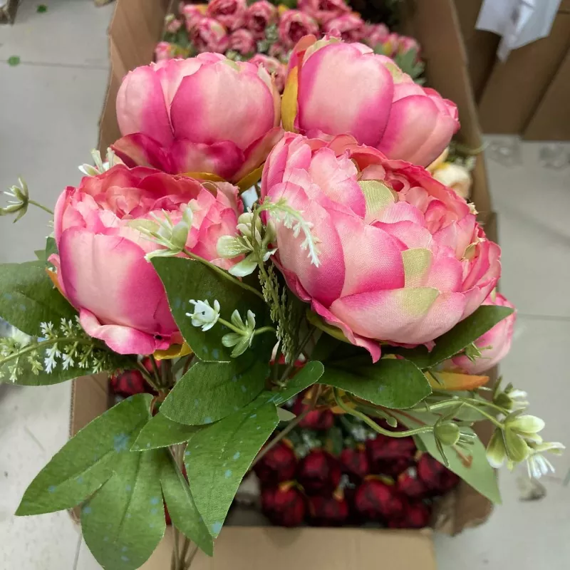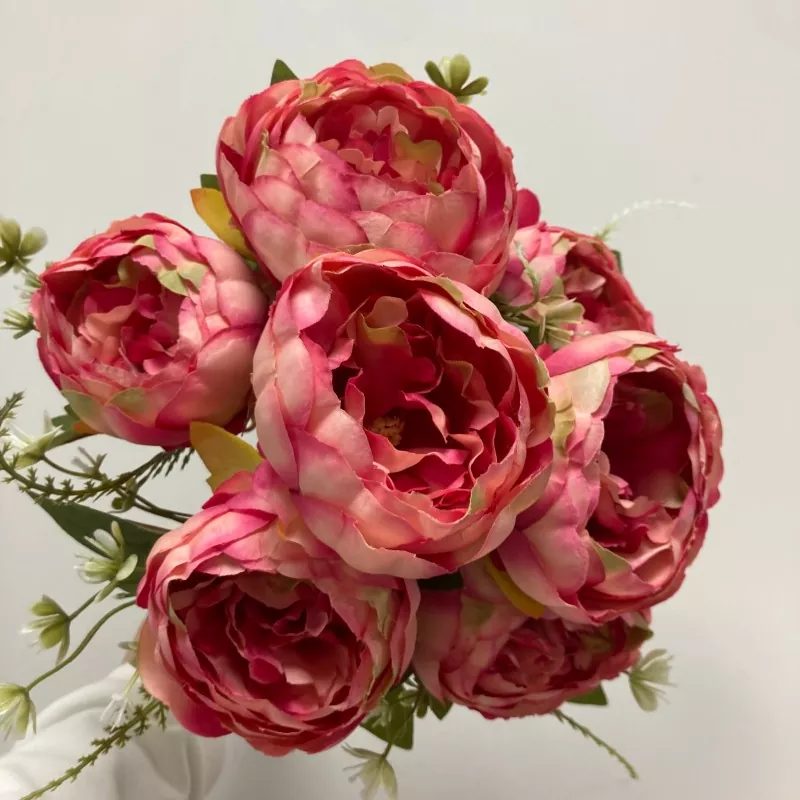 Iga kimp on 45cm pikk ja sisaldab seitset siidist kunstliku pojengi lillepead, iga 10 cm läbimõõduga, kaunistatud roheliste lehtede ja muude väikeste lilleliste aktsentidega.