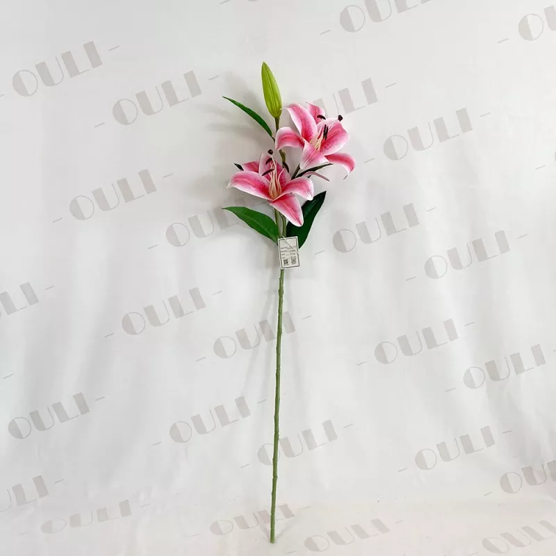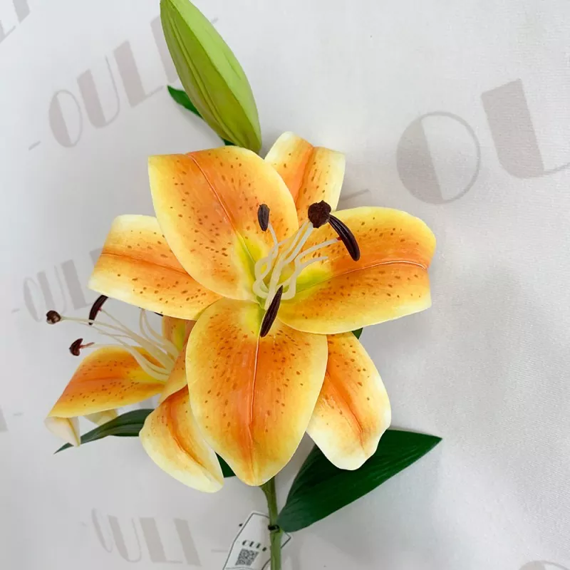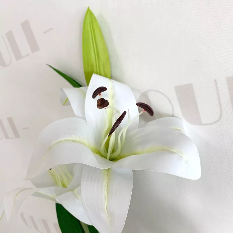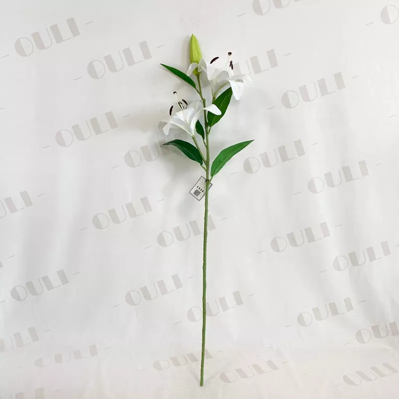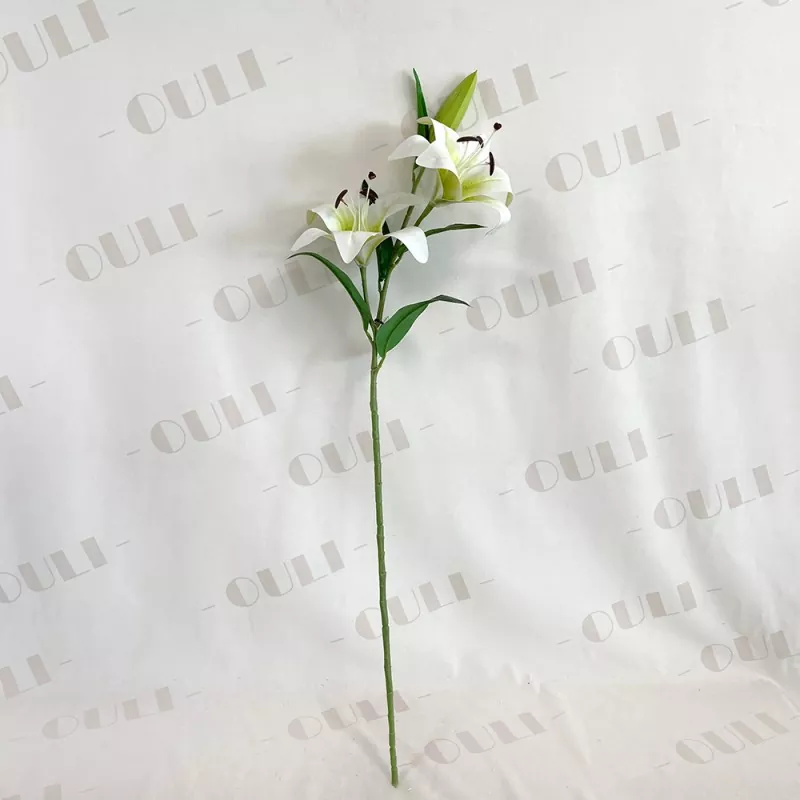 Kunstlike lillede ekspordile keskendunud brändina on OULI® pühendunud pakkuma globaalsetele klientidele dekoratiivse lillekunsti, mis ühendab ilu ja kvaliteeti. See PU võlts-liilia kasutab pehmet PU ja simulatsiooni siidriie kombinatsiooni, sirgete okste ning täis- ja looduslike lilledega. Ühe haru pikkus on 90cm, mis sisaldab 2 täielikult õitsenud lilli ja 1 punga, mis on ideaalne ese tänapäevaseks kodukaunistamiseks ja pulma taustaks. See PU võltsliily on läbinud sellised rahvusvahelised sertifikaadid nagu CE/UKCA/ROHS ja sobib pikaajaliseks sisekujunduseks.