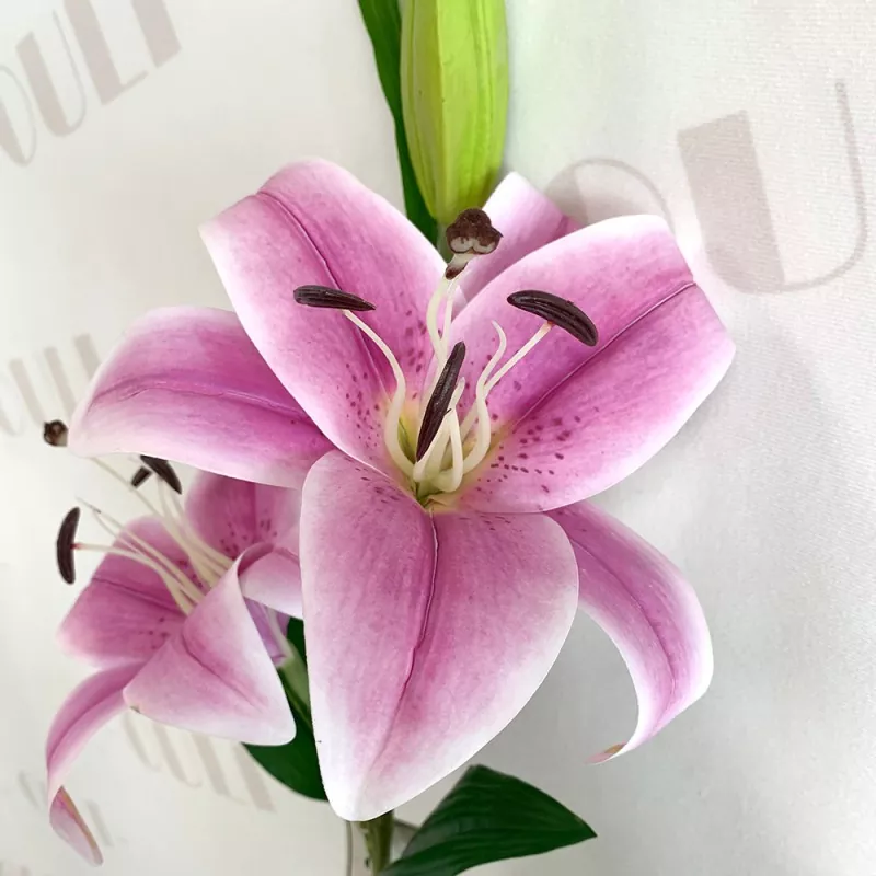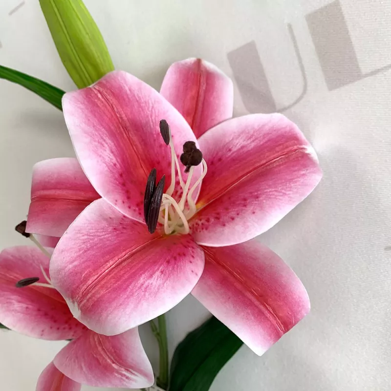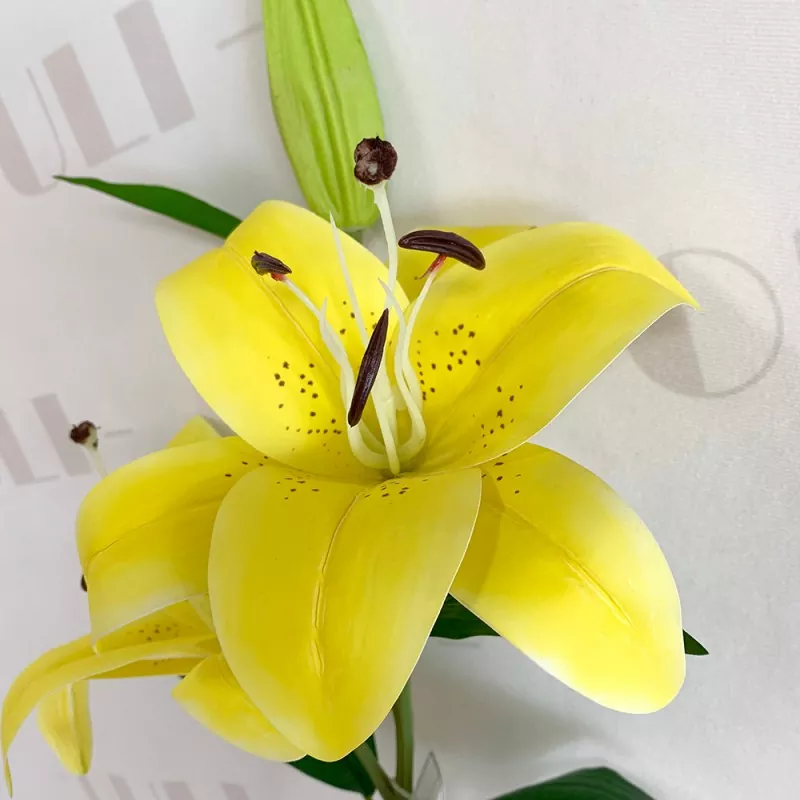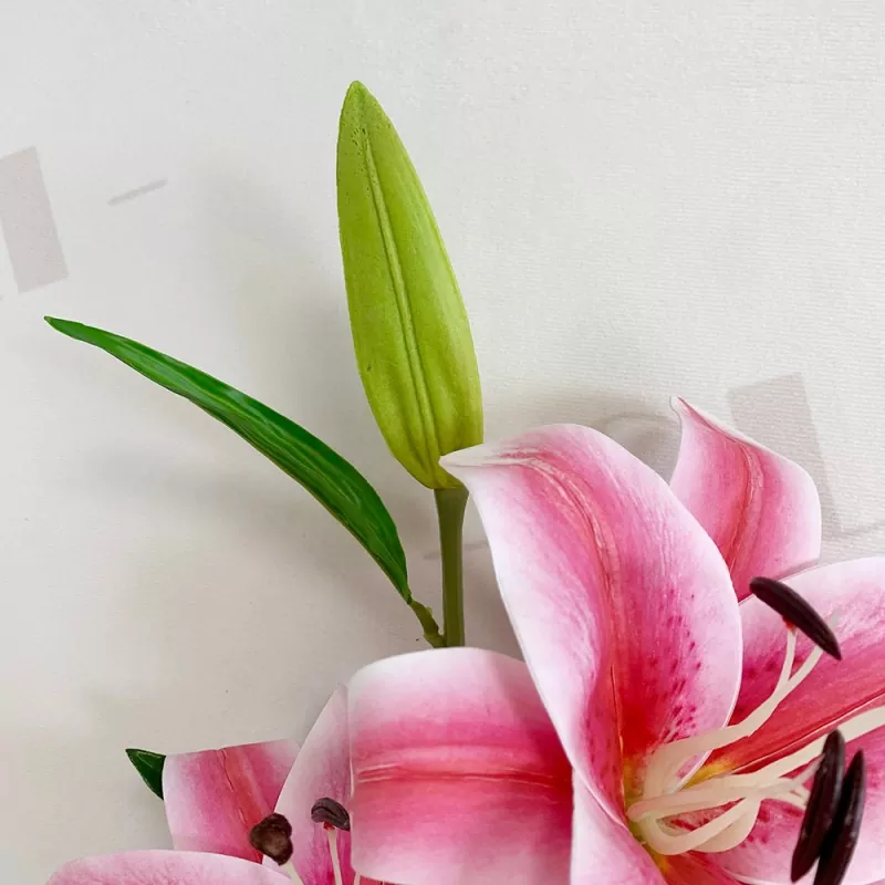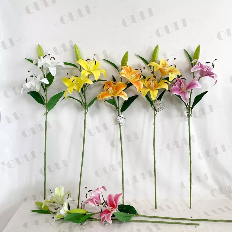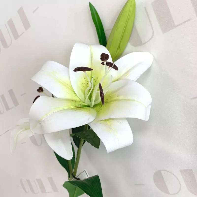 Kunstlike lillede ekspordile keskendunud brändina on OULI® pühendunud pakkuma globaalsetele klientidele dekoratiivse lillekunsti, mis ühendab ilu ja kvaliteeti. See PU võlts-liilia kasutab pehmet PU ja simulatsiooni siidriie kombinatsiooni, sirgete okste ning täis- ja looduslike lilledega. Ühe haru pikkus on 90cm, mis sisaldab 2 täielikult õitsenud lilli ja 1 punga, mis on ideaalne ese tänapäevaseks kodukaunistamiseks ja pulma taustaks. See PU võltsliily on läbinud sellised rahvusvahelised sertifikaadid nagu CE/UKCA/ROHS ja sobib pikaajaliseks sisekujunduseks.